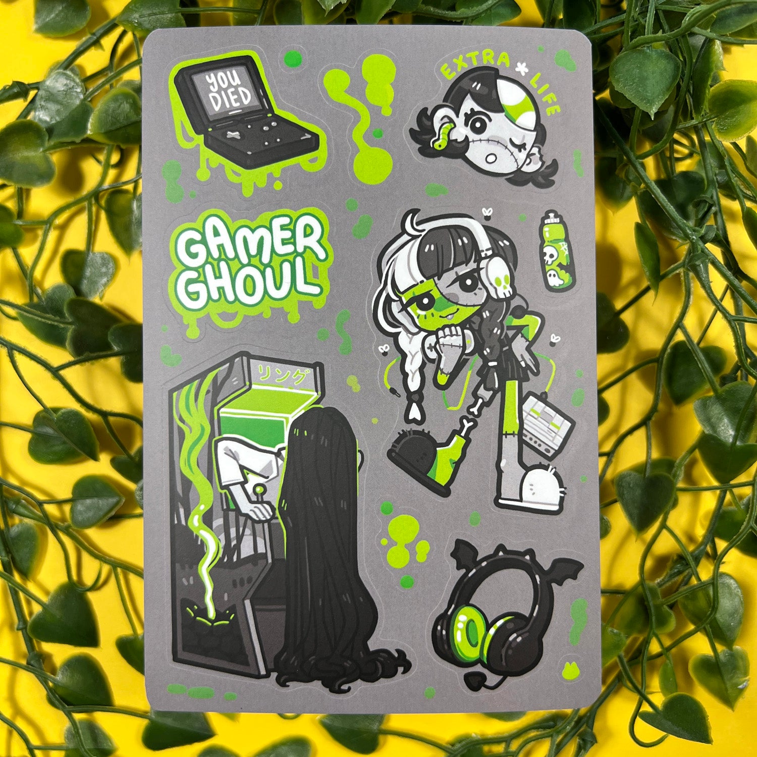 4x6" sticker sheet on water resistant paper. Perfect for sketchbooks, computers, journalling, and more! Please note, colours may appear slightly different to representation on-screen.